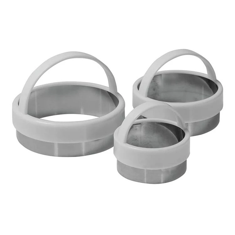 | Features | Easy handle for a more comfortable cut3 sizes for varied use: 7cm, 6cm, 4cmCuts scone dough without sticking |