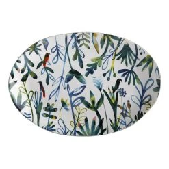 The Maxwell & Williams Marc Martin Dusk Oval Platter 41x28cm is the perfect centrepiece to any lunch or dinner spread, featuring a beautiful and unique design on premium stoneware. Created in collaboration with Melbourne artist Marc Martin, this platter showcases the artist’s signature style with a design of lush flora and hidden fauna. Dusk includes elegant dinnerware and a selection of serving platters, boards and accessories crafted in stoneware and enamelled mango wood.