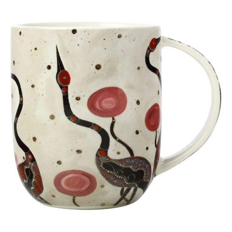 The Maxwell & Williams Melanie Hava Jugaig-Bana-Wabu Mug 440mL Brolgas from the Jagaig-Bana-Wabu (Earth-Water-Rainforest) collection features an original design by Australian artist Melanie Hava. Hava’s Aboriginal and Austrian heritage influence her artwork, with inspiration taken from both the reef and rainforest country of Far North Queensland and Austrian architecture and artists like Gustav Klimt. Each design in the range showcases a stunning combination of flora, fauna and landscapes in a vibrant colour palette.