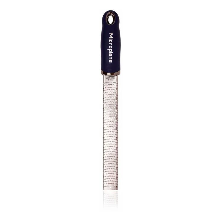 Grate ingredients finely with the Microplane premium zester. This zester is perfect for creating fluffy and finely grated cheeses and citrus fruits. The blade features photo-etched blade technology for high-precision zesting. An ergonomic soft grip handle makes it comfortable to hold and non-scratch tabs on the end of the zester prevent damage from occurring to your work surface.