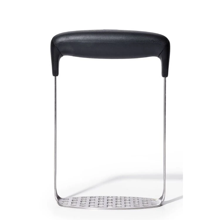 Get a smooth, powerful mash with the innovative OXO Good Grips Smooth Potato Masher. Itβs designed with a broad, non-slip, horizontal handle that lets you press straight down and absorbs pressure, reducing strain even through pounds of potatoes. The fine-grid, stainless steel mashing plate yields lump-free mashed potatoes. This tool is also ideal for mashing yams, carrots, or other root vegetables as well as apples and bananas. Great for prepping homemade baby food.