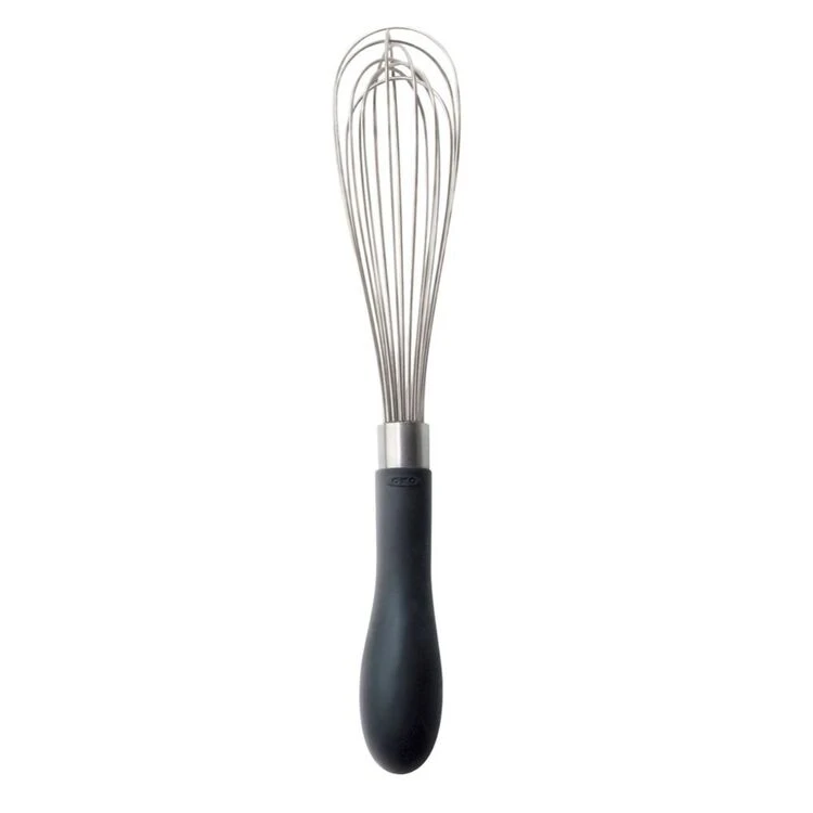 Beat eggs, stir batter, whip cream and stir sauces with ease. The OXO Good Grips Whisk features polished stainless steel wires and teardrop-shaped handles that fit comfortably in the palm of your hand.